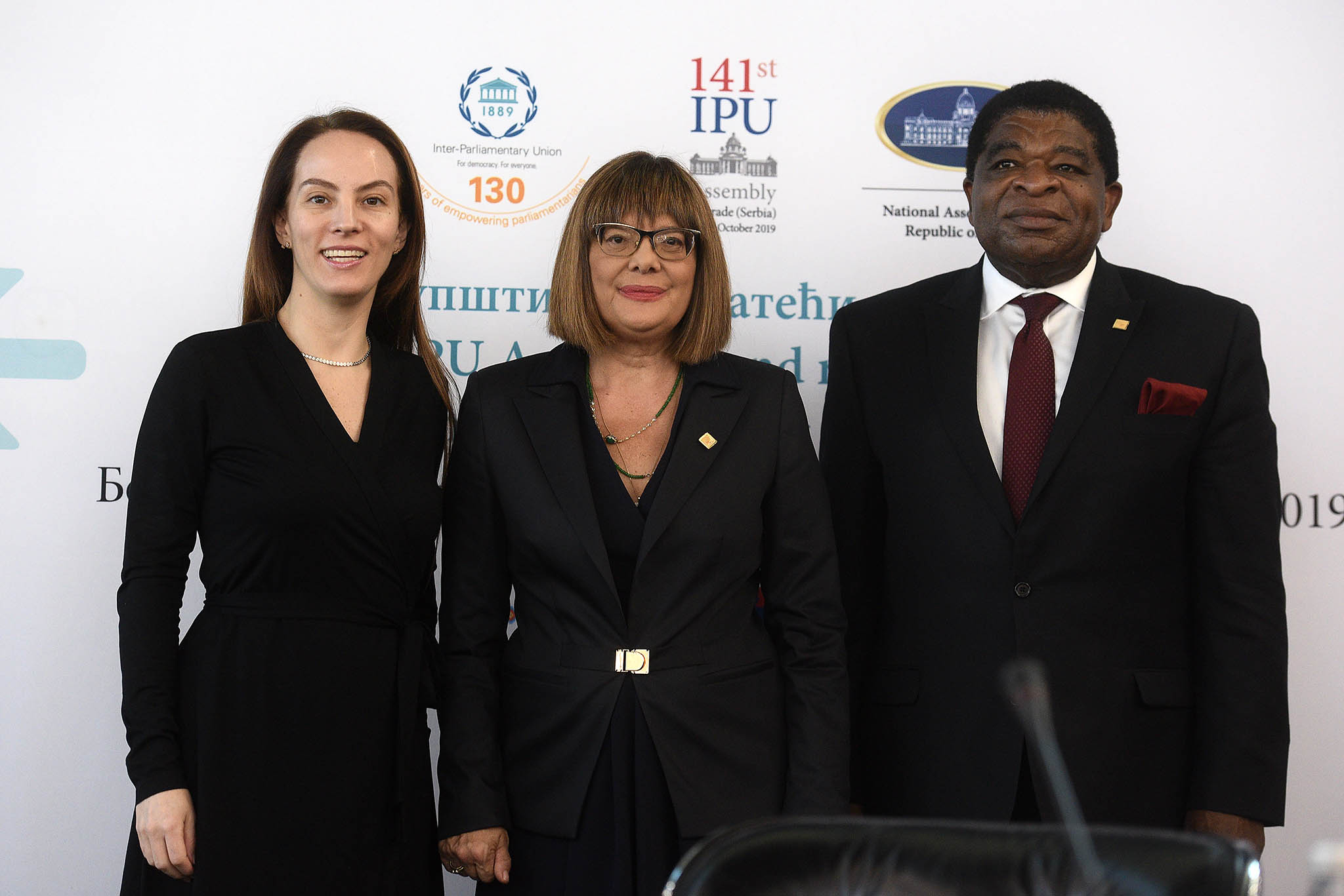 13 October 2019 National Assembly Speaker Maja Gojkovic, IPU President Gabriela Cuevas Barron and IPU Secretary-General Martin Chungong