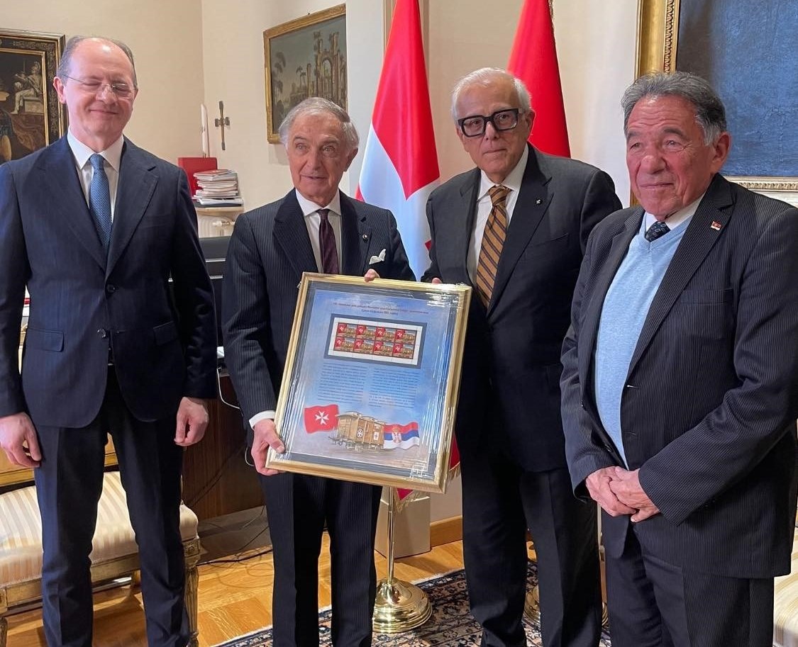 The meeting was an opportunity to officially present a framed reproduction of a commemorative postage stamp issued by the Republic of Serbia to commemorate the 140th anniversary of the donation of a hospital train, with which the Order of Malta supported the Kingdom of Serbia in 1885, at the outbreak of the Serbian-Bulgarian War.
